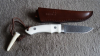 für beste Qualität und lang anhaltende Schärfe. Das Material für den Griff und Anhänger ist höchstwarscheinlich aus Knochen oder Micarta gefertigt. Die Gürtelscheide ist sehr Robust und aus Rindsleder angefertigt. Eine Besichtigung ist möglich.Selbstabholung nach Kauf auch.