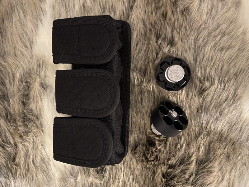 Moin zusammen, ich verkaufe hier die abgebildeten H.K.S. Speedloader Modell 586 und eine Speedloader-Tasche von COP. Ich habe die Sachen nie gebraucht... Zustand ist daher so gut wie neu. Bei Fragen gerne melden!