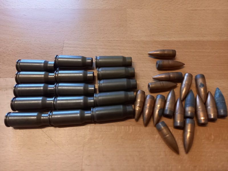 Schachtel mit 15 Patronen 7,92x33. Schachtel aus Tschechischer Nachkriegsproduktion, abgegriffen aber soweit in Ordnung. 15 Sehr gute Hülsen alle hla 1 45. Geschosse teils angelaufen, manche haben Druckstellen von der Entladezange. Treib und Zündmittel frei. EU Bieter Porto anfragen.