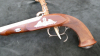 "Le Page" von Pedersoli, Kal. .44, Erhaltungszustand altersgemäß sehr gut (m.E. wenig bis gar nicht geschossen), Lauf innen mit leichten Flugrostspuren, ital. Beschuß 1988. Rückstecher, leichter Schaden rechts in der Fischhaut.