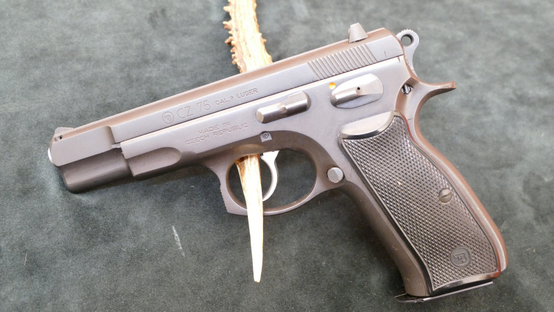 CZ Modell 75, Kal. 9mm Luger (Para), Erhaltungszustand altersgemäß sehr gut (die Oberfläche ist etwas stumpf, aber ansonsten kaum Kratzer oder Abriebspuren), Lauf blank, Beschuß 1994, die wenigen Abriebspuren am Lauf und am Magazin sprechen für eine geringe Schußbelastung.