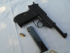 Verkaufe wegen Sammlungsverkleinerung: MARUSHIN Filmwaffe P38 für Firecaps die in Ladehülsen vormontiert werden müssen. Mit dabei 6 Ladehülsen und ein Metall-Magazin. Gehäuse der Waffe ist aus schwarzem Kunststoff, Innereien aus Metall. Leider sind keine FireCaps vorhanden. Deshalb liegt die P38 schon mehrere Jahre als Deko bei mir in einer Vitrine.