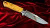 Bereits auf den ersten Blick beeindruckt der Griff aus wunderschön gemasertem Pappelholz. Die lebendige, nahezu dreidimensional wirkende Maserung verleiht diesem Messer eine unverwechselbare Ästhetik. Jede Struktur, jede Zeichnung ist naturgewachsen – kein Stück gleicht dem anderen. In Kombination mit den sauber gesetzten Nieten und der harmonisch ausgearbeiteten Zwinge entsteht ein stimmiges Gesamtbild von hoher handwerklicher Qualität.