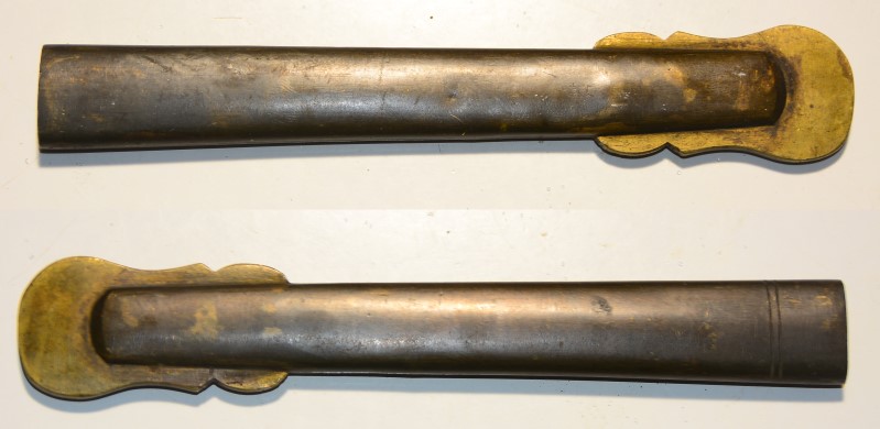 Original Ortblech von altem Degen, dickes Messingblech, 17,8cm lang, oben 23,5mm breit