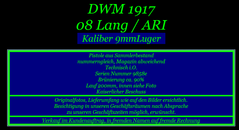 DWM 1917 08 Lang / ARI Kaliber 9mmLuger