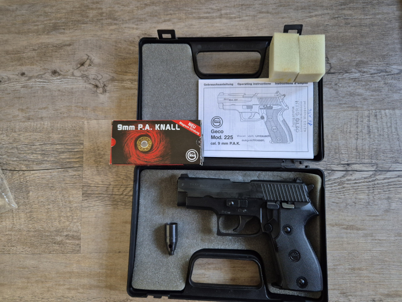 Ich verkaufe meine Geco P225 9mm mit der Geco Munition. Die Waffe ist in einem super Zustand und funktioniert einwandfrei. Selbst habe ich nicht damit geschossen, kann nicht zu einhundert Prozent garantieren das sie nicht geschossen wurde. Glaube aber aufgrund des Zustand nicht. Dazu gibt es den Originalkoffer, Abschussbecher, Beschreibung und die Munition 50 Schuss. Bitte beachtet das der Koffer eine kleine Stelle aufweist, was die Funktionalität nicht beeinflusst.