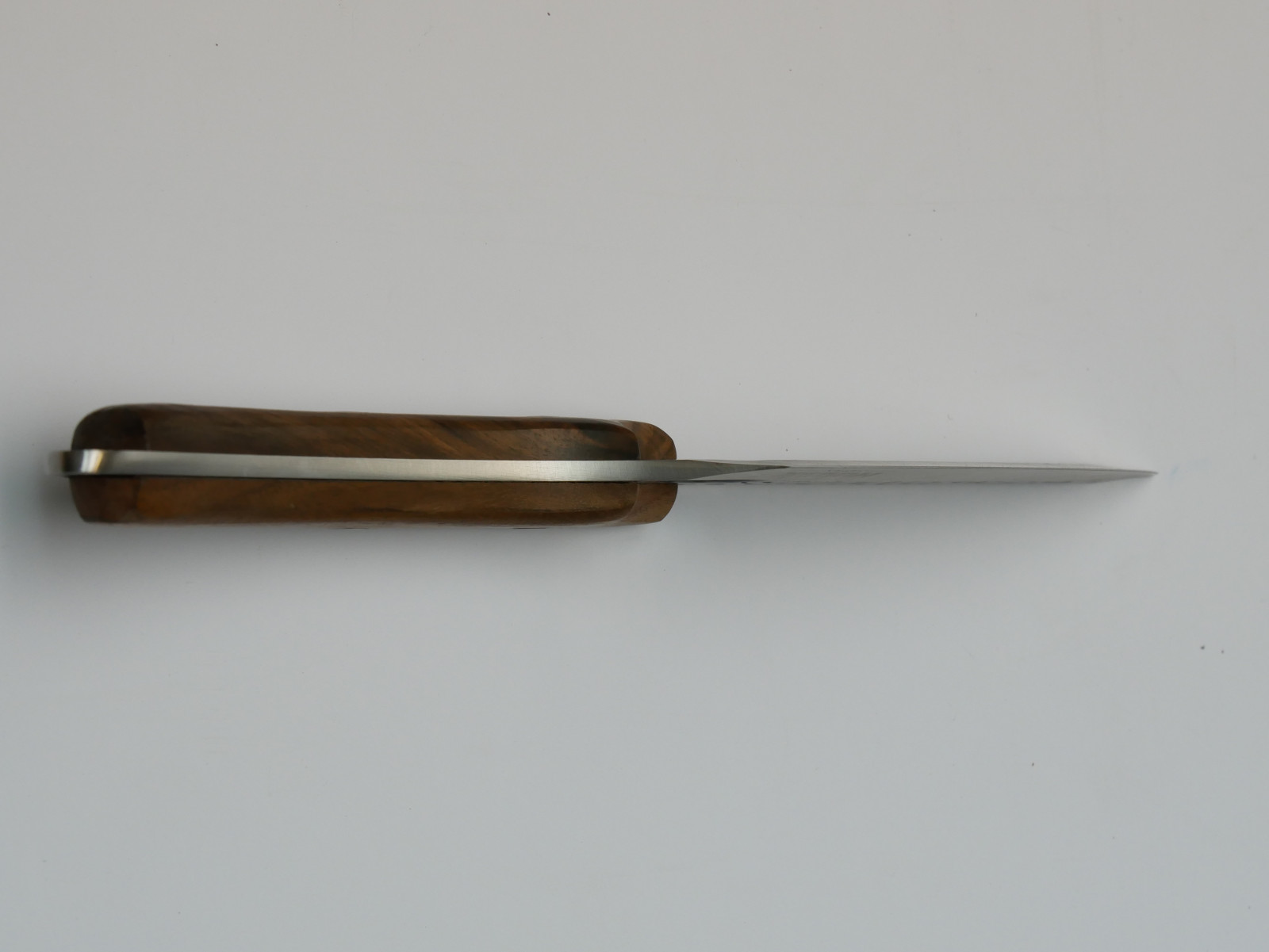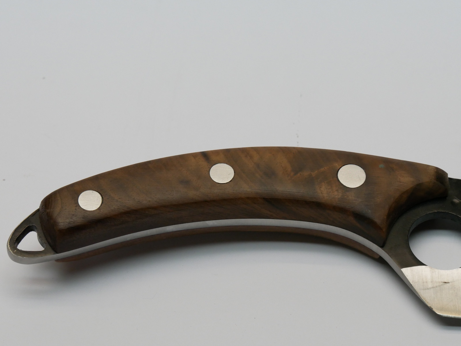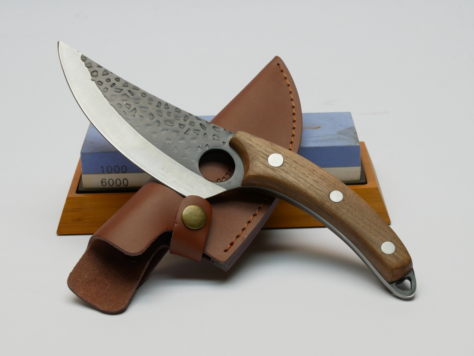 Hier biete ich ein schönes Küchenmesser von Huusk aus Japan in brauner Lederscheide an.