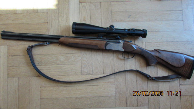 universell einsetzbare und solide Kombiwaffe, Doppelabzug, vorderer Abzug mit Rückstecher, Auszieher, Schiebesicherung auf dem Kolbenhals, dt. Backe, der Oberhebel steht noch rechts, demzufolge ist der Verschluss auch noch sehr stramm und dicht, Laufschiene mit Kimme und Korn, gültiger Beschuss ist vorhanden (ohne Stahlschrotbeschuss). Zielfernrohr Kettner 3-12x56 Abs. 4 mitvergrößernd mit Leuchtpunkt, 30mm Mittelrohr auf Schwenkmontage in gebrauchtem Zustand.