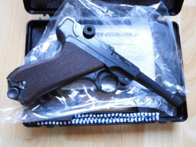Hallo ich verkaufe hier eine ME P08 Luger Schreckschuss Pistole 9mm PAK.. Zustand der Waffe ist neu.