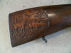 Schaft mit Pistolengriff und schottischer Fischhaut, sowie Jagdmotiv und Eichenlaub verschnitten.