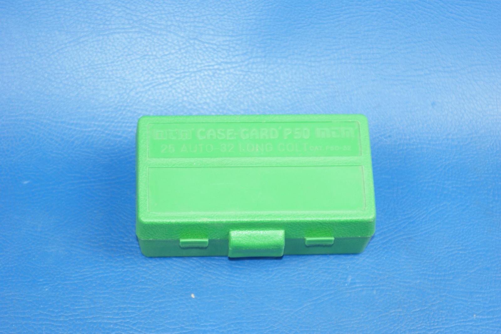 Eine Patronenbox der Marke MTM Case-Gard für das Kaliber .25 Auto, .32 Long Colt.