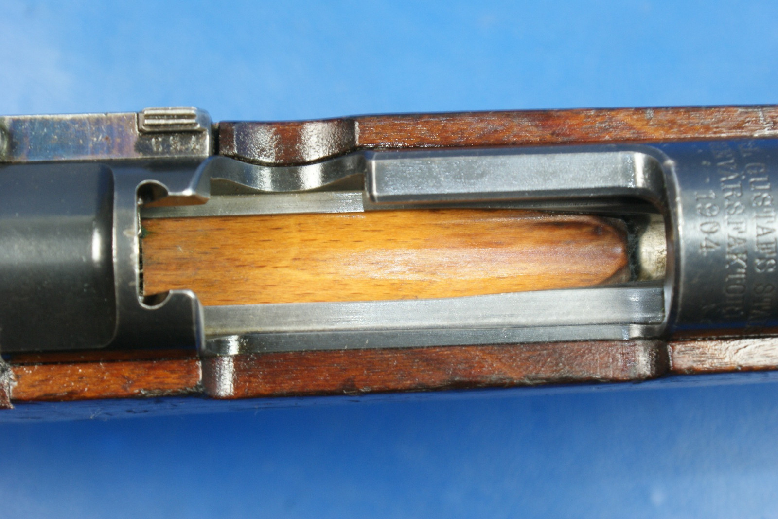 Lager- und Gebrauchsspuren. Umgebaut zum Einzellader, kann nicht mehr zurückgebaut werden.