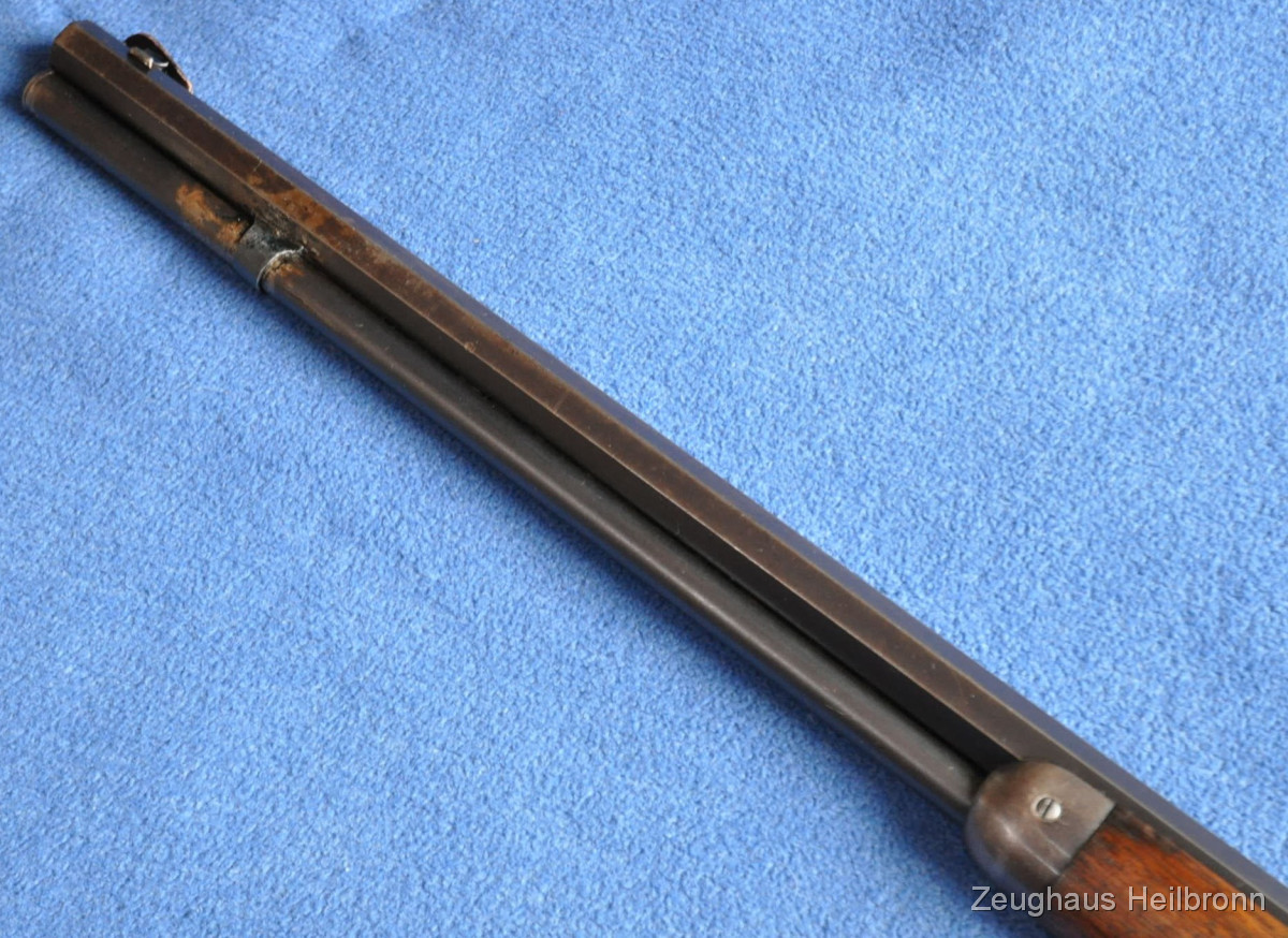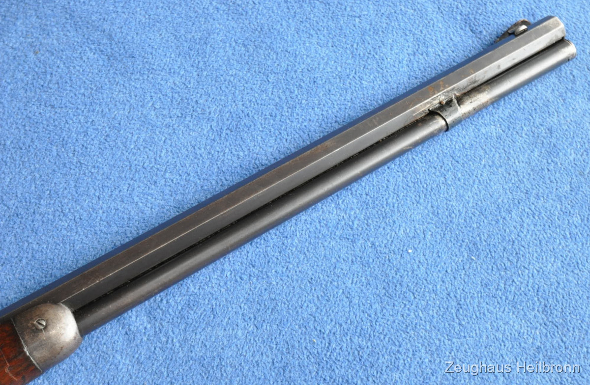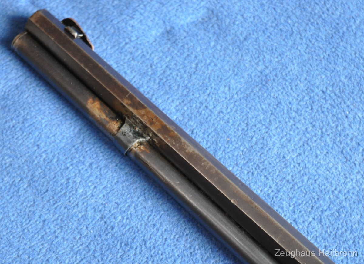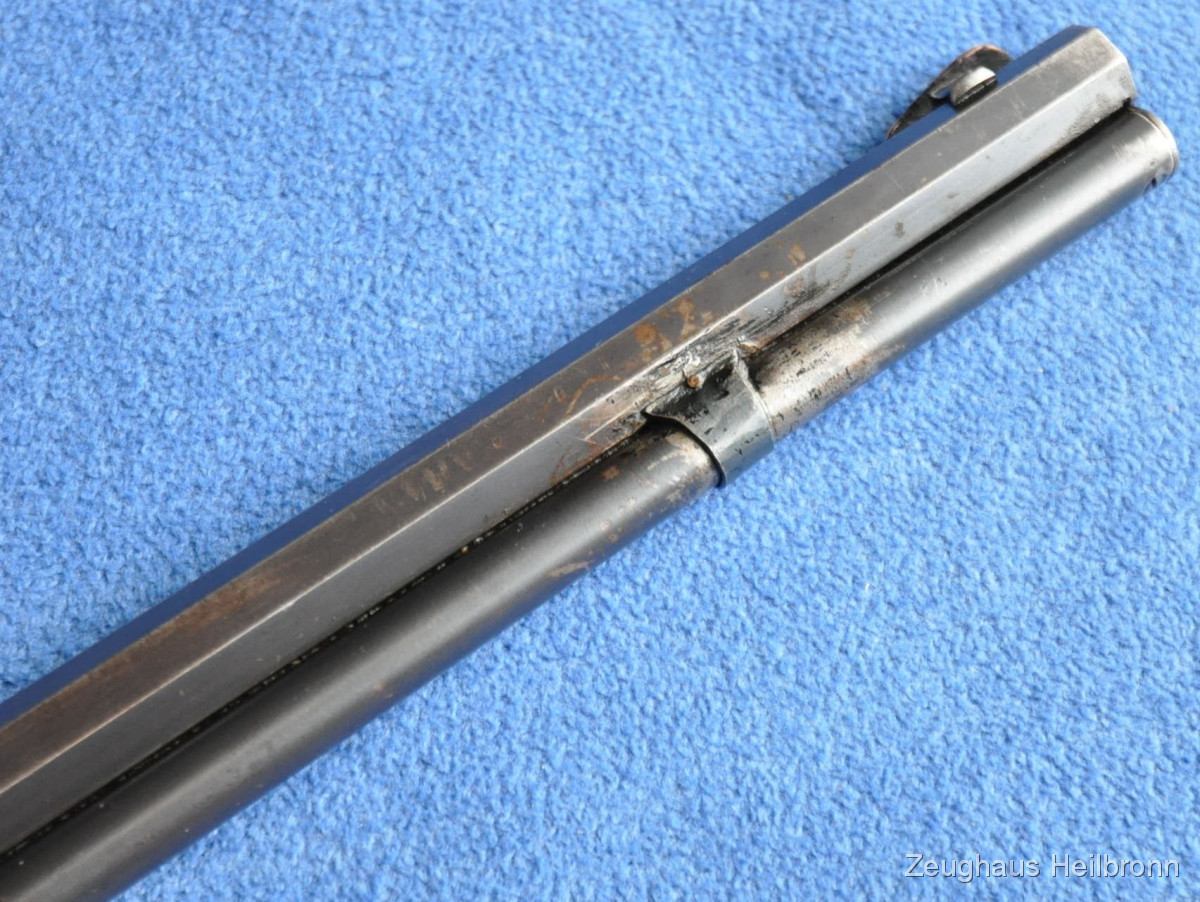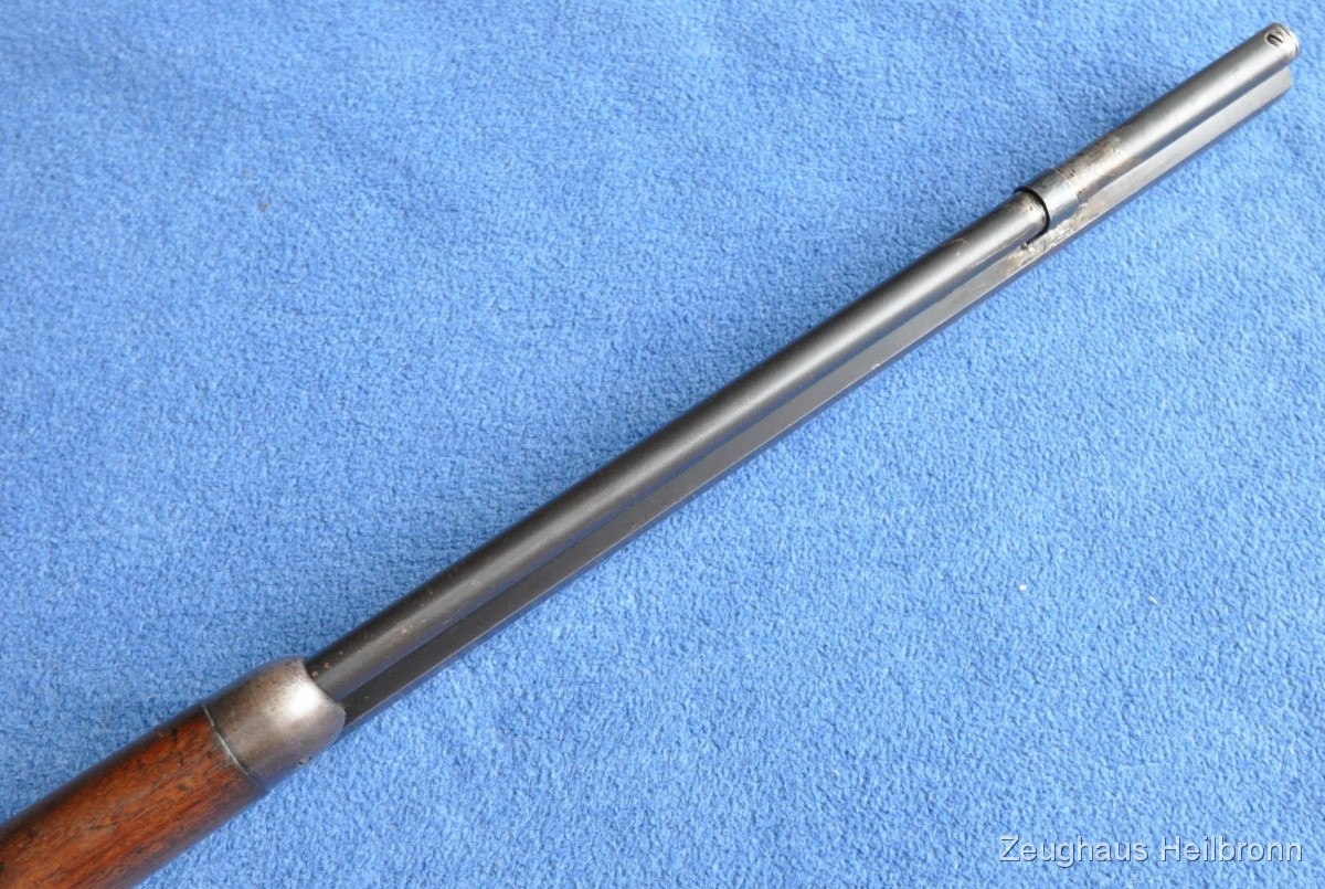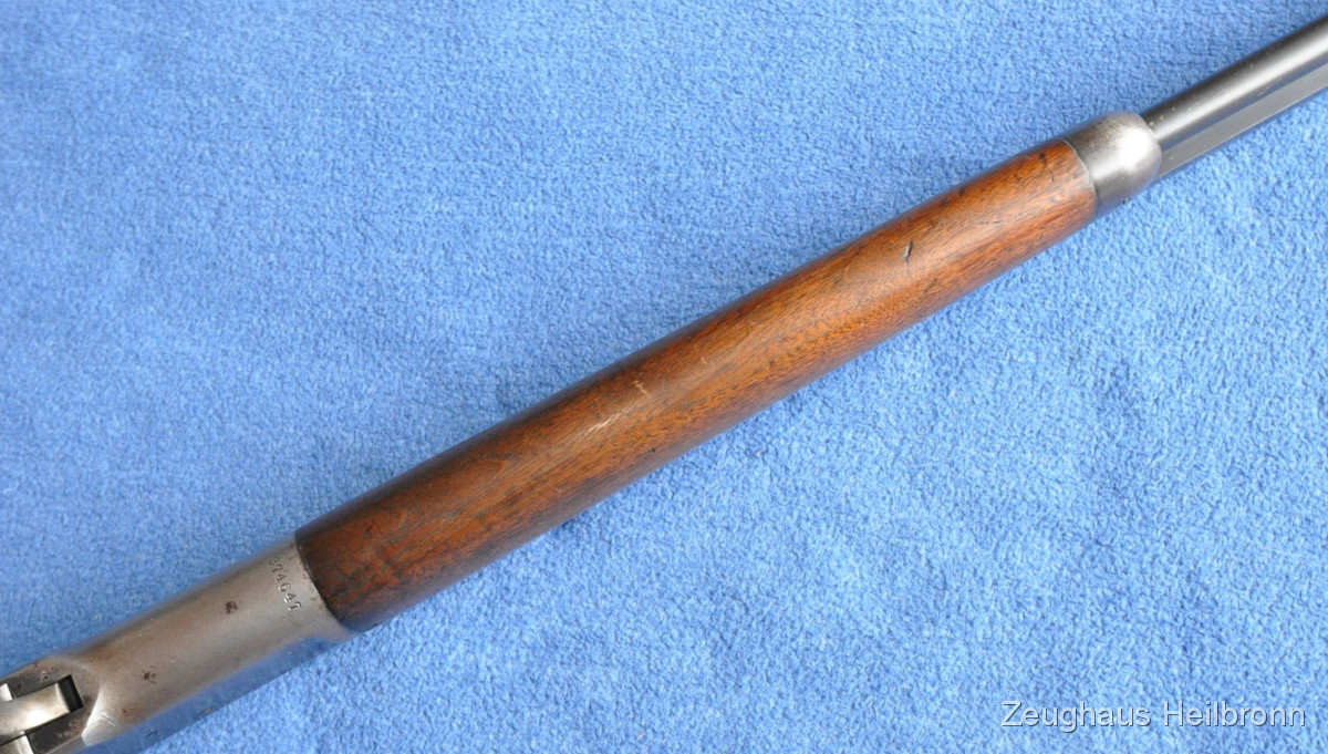 Waffe in einem leicht gebrauchten Zustand mit zeitgenössischer Reparatur am Magazinrohr, volle Funktion, Lauf blank.