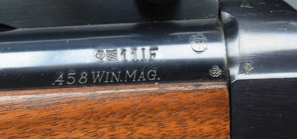 Ruger Modell 1, Kaliber 458 Winchester Magnum Gesamtlänge 104 cm, Lauflänge: 61 cm, Schaftlänge 36 cm