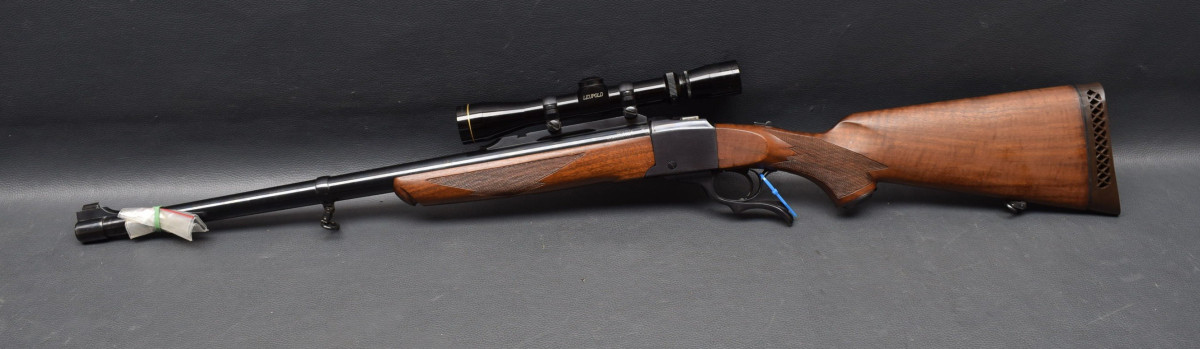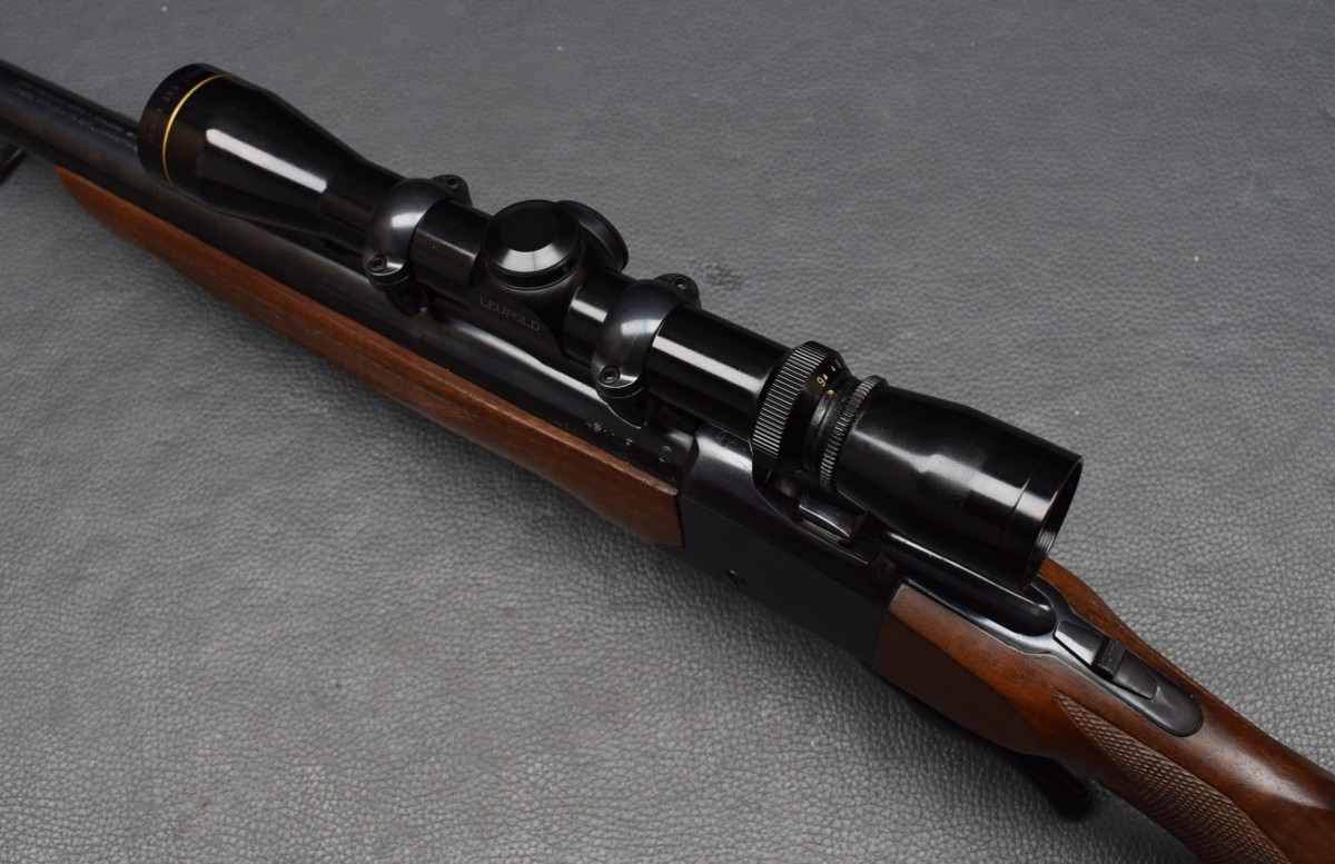 Montiert mit Leupold Vari-X 3-9x40 Abs. Plex, mittels Ruger Aufkippmontage, mit 25,4mm Ringen Nussbaumschaft ohne Backe, mit Gummischaftkappe und Riemenbügeln.