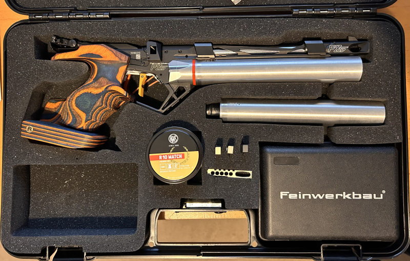 Die FWB P85 ist wenig genutzt und daher nahezu neuwertig. Ich habe die P85 mit einem RInk Griff Größe L, rechts, ballig, 0 Grad ausgestattet.