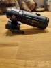 Wird vor eine Rotpunktvisierung montiert. 5-fache Vergrößerung. Arretierbare Schnellwechselmontage (Flip-to-Side). Externe Seiten- und Höhenverstellung zur Ausrichtung. Der Tubus ist aus Aluminiumlegierung, mehrfach beschichtete Linsen. Die Linse ist klar und kratzerfrei (siehe Foto durch die Optik). War bei mir lediglich auf einer Kleinkaliber-Büchse montiert. Hatte ich mal bei Frankonia gekauft, wird aber nun nicht mehr benötigt. OVP vorhanden.