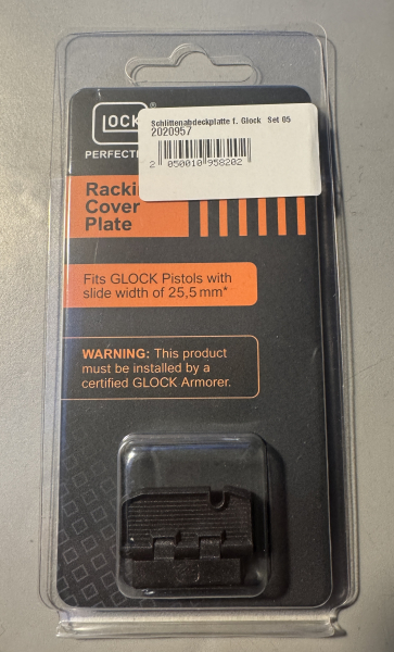 Die GLOCK Racking Cover Plate ist passend für GLOCK Pistolen mit Standardschlittenbreite (25,5 mm). Sie passt nicht für GLOCK Pistolen im Kaliber .22 lfB., 10 mm AUTO, .45 GAP und .45 AUTO (außer G41 Gen4), GLOCK Slimline-Pistolen und bei austauschbaren Griffrücken mit langem Beavertail.