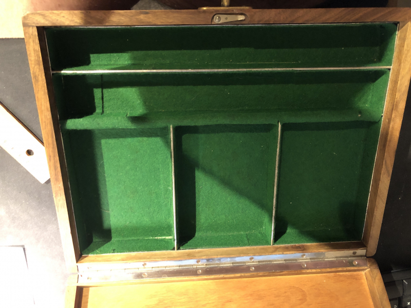 Verkaufe meinen schönen Utensilien Reinigungskasten , wurde noch in alter Handwerks Qualität gezapft und geklebt vor 35 Jahren hergestellt. Auch die Schlossfalle ist schon der Hinkucker.