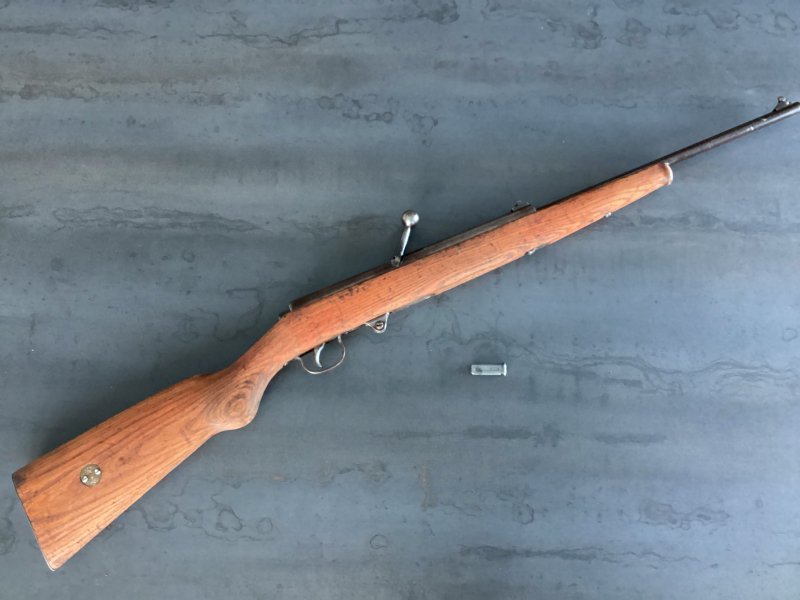 Angeboten wird hier ein sehr rares Haenel Modell 49 junior , eines der ersten Suhler Luftgewehre nach Kriegsende. Alle Funktionen inclusive der Sicherung und auch der Druck sind perfekt. Der optische Zustand ist dem hohen Alter entsprechend mit Gebrauchsspuren. Gesamtlänge des Luftgewehre sind 985mm. Ein passendes 6 er DRP Magazin ist natürlich dabei. Dieses Haenel Modell fehlt in den meisten Sammlungen , hier wäre die Gelegenheit dies zu ändern ;-) Der Versand erfolgt ausschließlich versichert mit dhl. Ein Altersnachweis vom Käufer ist erforderlich. Privatverkauf , Reklamationen und Umtausch sind daher wie immer ausgeschlossen.