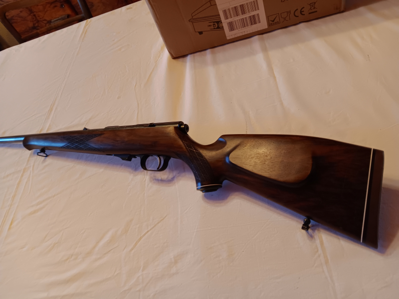 War ein 56er Glas montiert , deswegen fehlt die Klappkimme , finde ich aber leider nicht mehr . Bei Bedarf kann auch noch günstig Munition erworben werden . Keine Garantie oder Rücknahme da ich Privatverkäufer bin .