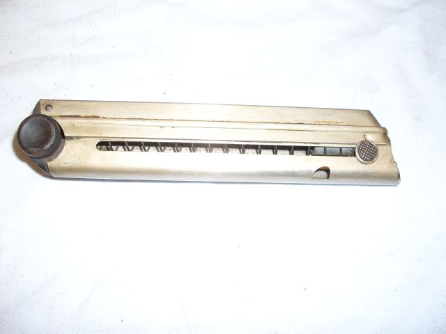 Sie bieten hier auf ein orig. 08 Magazin mit Holzboden. Alle Teile vorhanden, Kein Rost, voll Funktionsfähig, Gehäuse und Holzbodenstück ohne Stempel. Trage- und Gebrauchsspuren zu erkennen. Zustand gemäß Fotos. Details und Fragen bitte vor Ablauf der Auktion klären. Farbabweichung durch Blitzlicht möglich. Privatverkauf kein Rückgaberecht und Gewährleistung. Der Bieter erklärt sich durch sein Gebot mit diesen Bedingungen einverstanden. Verkauf und Versand nur innerhalb von Deutschland mit Hermes Paket versichert.
