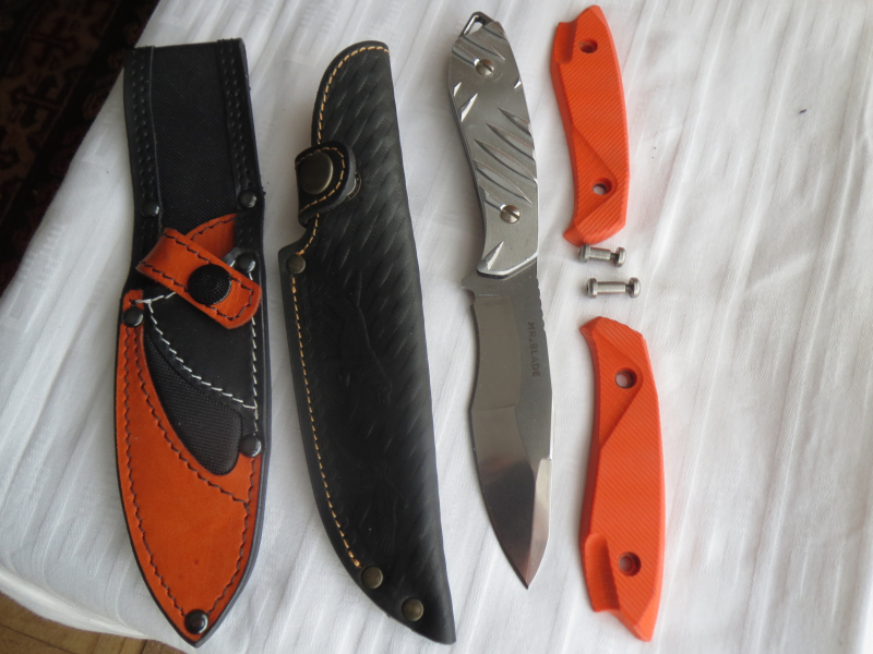 Original Griffschalen Orange G10 mit Lederscheide Orange-Schwarz, inkl Alugriffschalen und Jagdlederscheide.