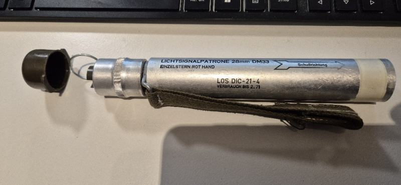 Zur Auktion kommt die auf den Bildern zu sehende Lichtsignalpatrone 28mm DM33 in einem Super Zustand.