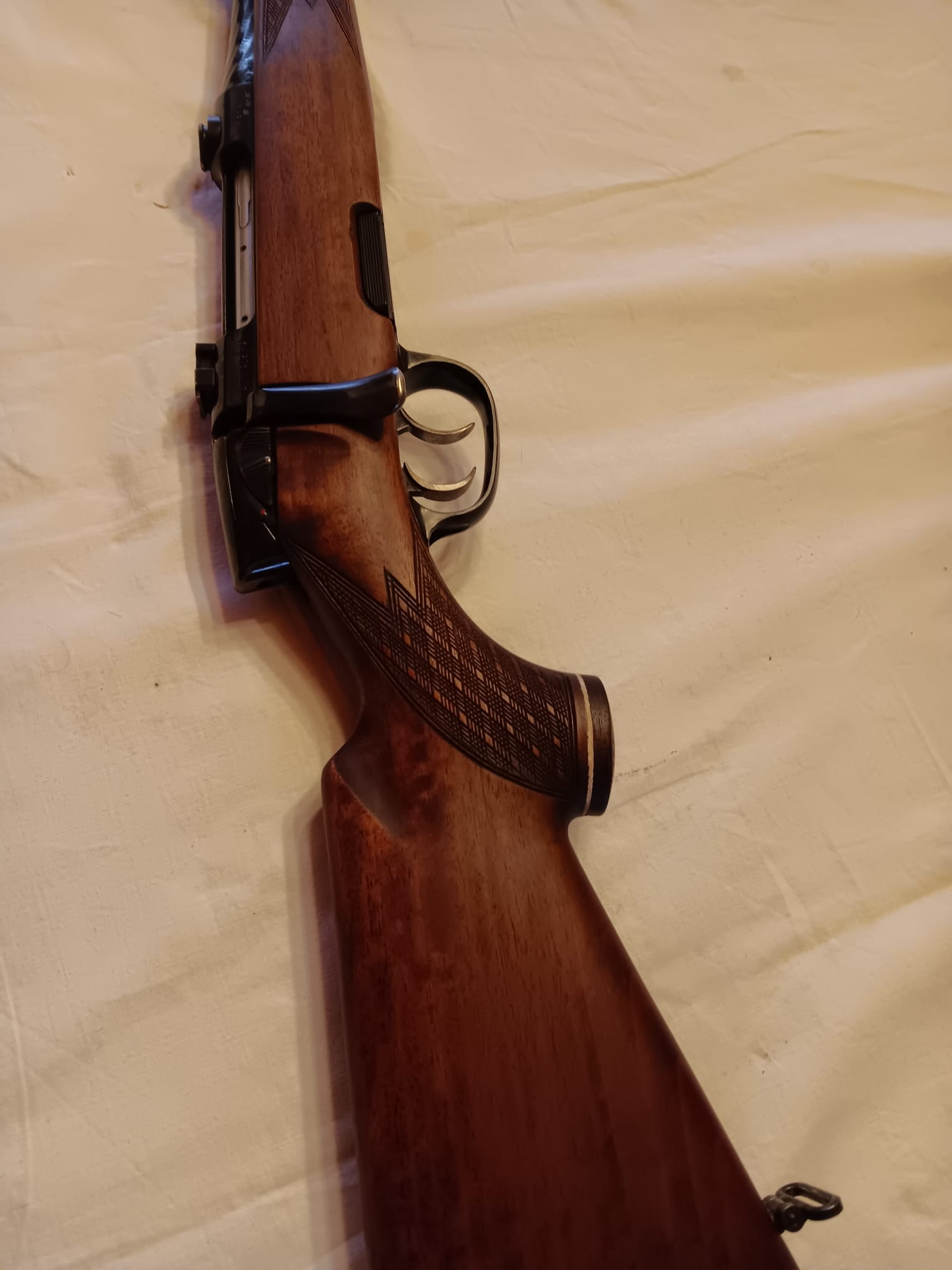 Steyr 7x64 in sehr guten Zustand . Lauf blank . Magazinschacht nichts gerissen oder gebrochen . Schöner Schaft mit tiefer Fischhaut.