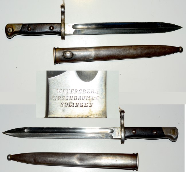 Bajonett für Chile Mauser Gewehr 1895, Klingenlänge 25,4 cm, Hersteller "Weyersberg Kirchbaum & Co Solingen", chilenisches Wappen auf Klinge, guter Zustand