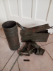 Kein internationaler Versand / no international shipping! Versand nur innerhalb Deutschland / shipping only in germany! *** Ich verkaufe hier einen WK II Schutzmaskenbehälter aus Blech. Der Behälter ist unrestauriert in Originalfarbe mit leichem Rost außen, innen ist die Oberfläche gut. Scharnier und Trageösen sind in Ordnung. Dazu gibt es eine Maske, deren Gummi noch flexibel und ohne Brüche oder Risse ist. Die Hautkontaktflächen sind mit Wildleder gefüttert. Einen Filter habe ich nicht dazu, es passen aber die BW-Filter. Der Ladestreifen war drin, gibts dazu. Außerdem ist ein MG-Gurtkasten der Bundeswehr Bestandteil dieser Auktion. Der Kasten hat viele Rostflächen, aber keine tiefen Rostnarben, innen ok. Man kann den Kasten restaurieren. Die Lederteile an den Griffen sind in Ordnung, Scharnier und Verschluss sind gängig. *** Ich verkaufe die Behälter mit gutem Gewissen, aber dennoch unter Ausschluss jeder Gewährleistung und Haftung. Kein Rückgaberecht. ----- KEIN Versand ins Ausland bedeutet bei mir, dass dieses Wehrmaterial von mir NUR an einen Empfänger in Deutschland -in den international anerkannten Grenzen von 1990- versendet wird. Das tue ich aus weitestgehender Unkenntnis über die jeweiligen gesetzlichen Bestimmungen in fremden Ländern - Erwerbsberechtigungen, Einfuhrbeschränkungen, Zölle... - selbst wenn ich damit auf einen großen potentiellen Kundenkreis verzichte. Bieter aus dem Ausland sind nur dann willkommen, wenn sie eine erwerbsberechtigte Kontaktperson / Firma, Zustelladresse, in Deutschland direkt nach Zuschlag benennen können.