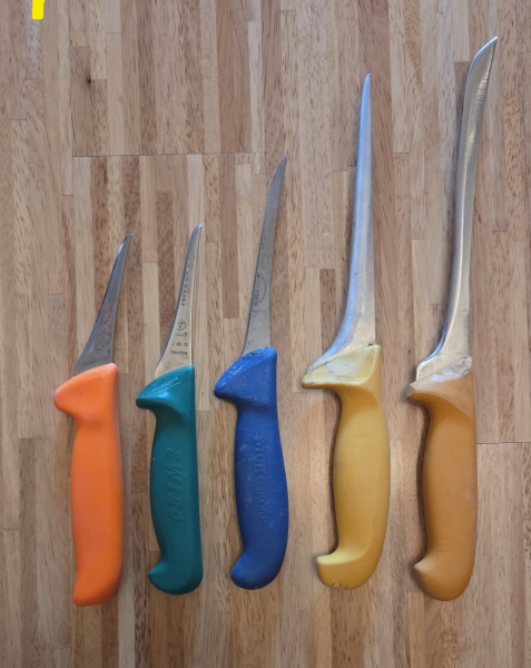 Hallo liebe Egunner, verkauft werden hier alte Messer von meinem Vater aus der Arbeit. Hersteller sind Dick, Giesser, Swibo. Zustand siehe Bilder. Keine Rücknahme, Garantie. Viel Spaß beim Bieten!