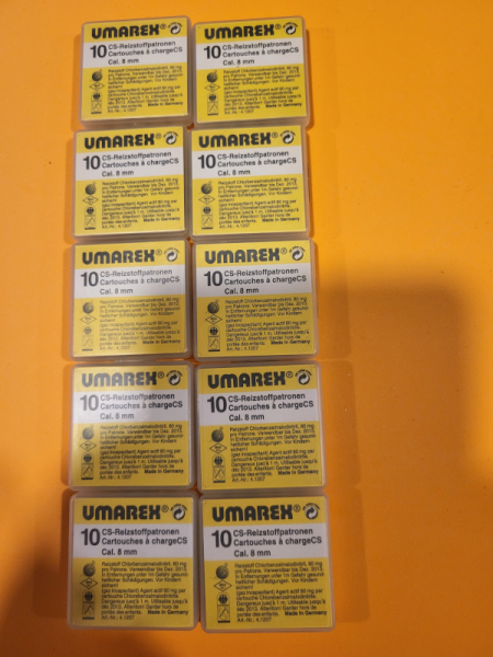 Sie bieten auf eine Grosspackung alte Umarex Gaspatronen im Cal. 8mm Insgesammt 100 Stück, Patronen im Neuwertigen Zustand.