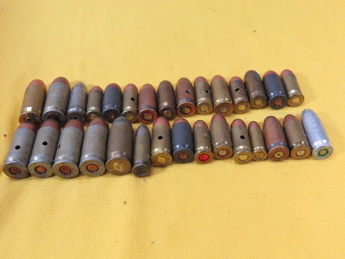 Konvolut von 30 Stück Dekomunition für Kurzwaffen. Die Munition ist unbrauchbar ohne Gefahrenstoffe mit Bohrungen oder mit Kügelchen in der Hülse. Bitte keine Anfragen zu dieser Auktion !! Gebrauchter Zustand wie auf Bilder. Versand nur per DHL, Übergabe nur an Personen über 18 Jahre oder Abholung. Altersnachweis nach Kauf erforderlich.