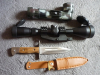 Verkaufe aus Auflösung Zielfernrohr mit einteiliger Schnellspann-Montage für Weaver/Picatinny Schiene, incl. Schutzklappdeckel, Absehen: MilDot, keine Beschädigungen, Optik kratzerfrei, sehr guter Zustand. Ebenfalls Winkellampe US Style in Tarn, neuwertig. Sowie AK Messer-Bajonett ( Saufänger) ebenfalls neuwertig.