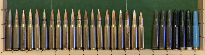 Für Bodenstempel-Sammler biete ich hier 27 Sammlerpatronen des Kalibers 7,62x51/.308 Winchester. Die BS lauten in loser Reihenfolge (für das Nato-Zeichen „Kreuz im Kreis“ steht „Nato“): 7,62x51 SB 79; 7,62x51 FLB 73; Nato RG 84; _”F.L.B.”_73 7,62x51; Nato MS 45-62; HP 60 52; 7,62x51 IWK 92-61; 7,62x51 MS 18-61; 7,62x51 SB-T 80; Nato AMA 88; Nato IWK 66-12; Nato WRA 59; Nato MEN 92 M0004; Nato RA 22-64; Bombe SBP Bombe .308W; MEN .308 WIN; LAPUA .308 WIN; .308W o o 86; WINCHESTER .308 WIN; RWS .308 WIN; (Platzpatronen:) 7,62x51 DAG-71-15; 7,62x51 HK25-64; 7,62x51 HK87-4; DAG 7,62x51; 7,62x51 HK75-4; DAG 87; 1x ohne Stempel. Alle Patronen sind delaboriert und enthalten keinerlei Gefahrenstoffe mehr, dafür aber Klapperkügelchen. Der Versand erfolgt per DHL Päckchen S für 4,19€. Bei Versand ins Ausland, Porto bitte vor Ende der Auktion erfragen.
