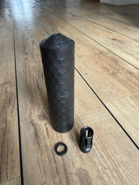 Dieser Schalldämpfer besteht aus Titan und wiegt nur 248g !!! Das Material ist hitzeverträglich, der SD daher auch Schießkinotauglich!