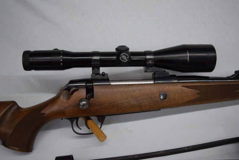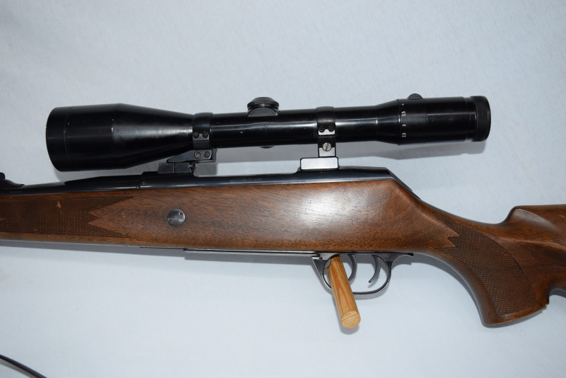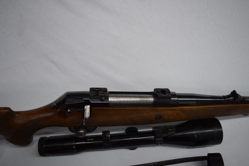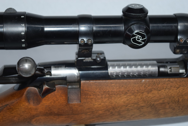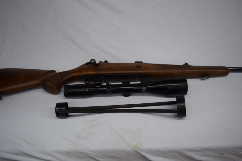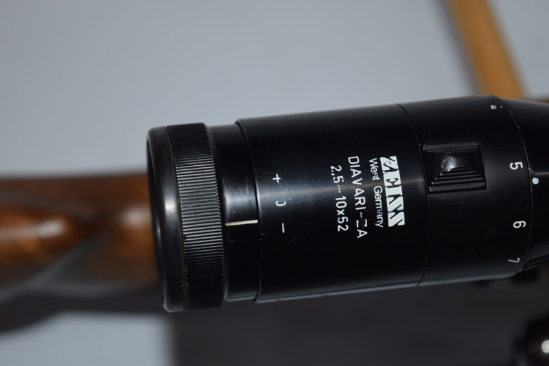 Das abgebildete originale Zeiss Diavari Zielfernrohr, 2,5-10x52, nebst Schwenk-Montage verbleiben natürlich auf der Waffe.
