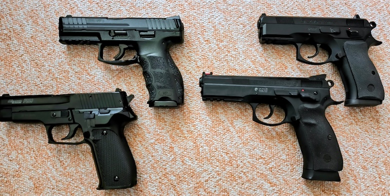 Verkaufe dieses Set mit 4 Federdruck Airsoft Pistolen in 6mm BB. Ab 14 Jahren. <0,5J. CZ75D Compact. CZ75 SP-01 Shadow. HK VP9 Metallschlitten. SigSauer 226.