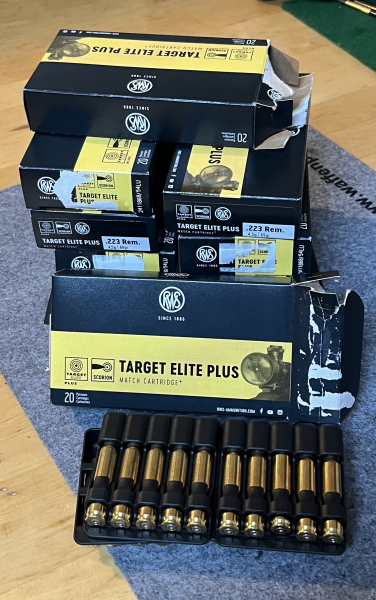 200 losgleiche Hülsen in der legendären RWS Target Elite Plus Qualität. Die Hülsen sind losgleich und wurden einmal als Fabrikmunition aus unserer Vereinswaffe (Howa 1500 - Repetierer) abgefeuert. Anschließend ging’s zurück in die jeweilige Packung und hier sind sie. Kaliber .223 Remington