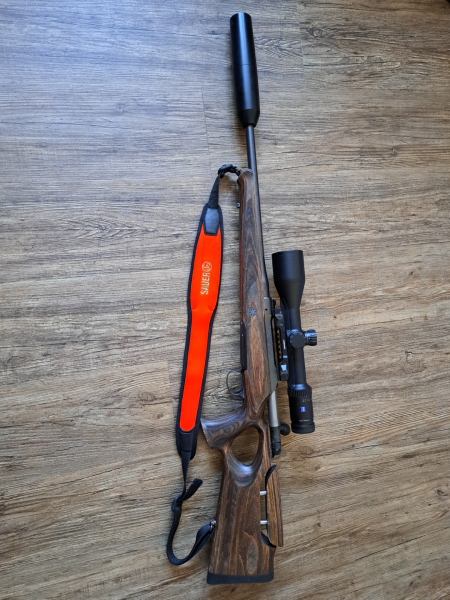 Zum Verkauf steht eine Sauer 101 GTI 308win komplett mit einem Sauer Titanium Pro Schalldämpfer. Das Gewehr ist mit einem Zeiss V6 2,5-15x56 Zielfernrohr ausgestattet, das auf einer hochwertigen Innomount Schnellwechselmontage montiert ist. Die Lauflänge wurde von Sauer bei der Herstellung des Gewehrs speziell für den Schalldämpfer gekürzt. Zum Gewehr gehören außerdem ein orangefarbener Trageriemen und eine Sauer Gewehrtasche.