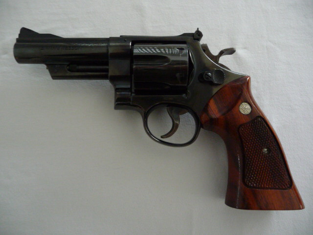 Zum Verkauf kommt ein sich im neuwertigen Zustand befindlicher Revolver von Smith & Wesson im Kaliber .44 Rem. Mag. mit 4 Zoll Lauf, Modell 29-2.