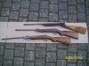 Verkaufe hier aus einem Nachlass einige Luftgewehre, hier ein 3 altes LG, ein Diana Mod. 23, ein Falke Mod. 60 und eines ohne Hersteller, in gebrauchtem Zustand, das heißt, dass Gebrauchsspuren vorhanden sind. Aufgrund des Zustandes werden die 3 als Bastlerware verkauft. Die Luftgewehre lassen sich spannen und abschlagen, das alte ohne Hersteller hat keinen Druck, die beiden anderen haben Druck. das Falke hat noch einen Schaftriss, siehe Bilder. Den weiteren Zustand entnehmen Sie bitte den Bildern, die auch Bestandteil der Artikelbeschreibung sind.