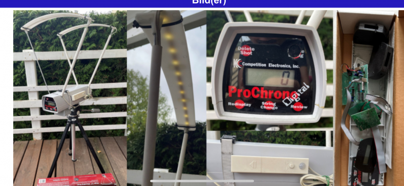 Sie bieten auf einen ProChrono Digital Chronograph der Firma Competition Electronics (www.competitionelectronics.com). Der Chronograph war bei mir lange im Einsatz und wurde mit LED-betriebenen Beleuchtungsstreifen auf den Diffusoren und eine Batterieschachtel für größere 9V Batterien erweitert. Der Chronograph funktioniert zuverlässig und ist betriebsbereit.