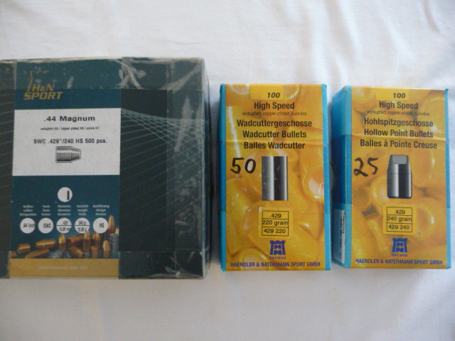 Zum Verkauf kommen 575 verkupferte High Speed Geschoße von Haendler&Natermann im Diameter .429“ für .44 Special /.44. Rem. Mag.