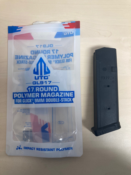 Zum Verkauf kommt ein Magazin für Glock 17 von UTG. 17 Schuss. Neu und unbenutzt.