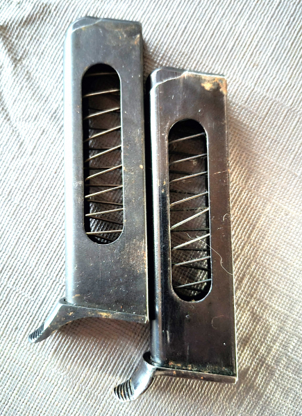 Moin. Sie bieten auf 2 Magazine für Beretta Pistolen. Meines wissens sind sie für das Modell 1922 Marine und fassen 8 Schuss.
