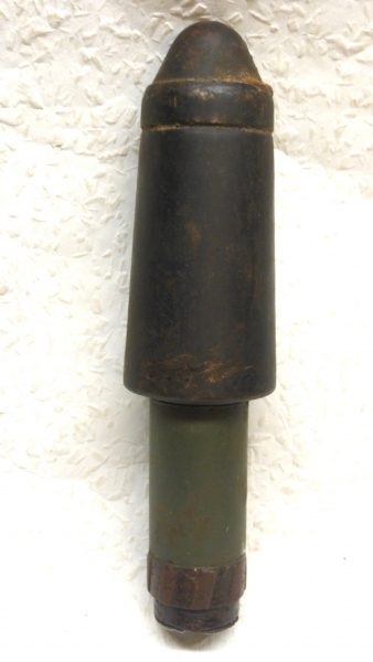 Sie bieten auf eine große Gewehrgranate, Zustand siehe Bilder, keine Durchrostungen, nichts gespachtelt. Drallkappe stark abgenutzt. Oberteil original Lack, Schaft wohl mal nachgearbeitet? Komplett leer, keine gefährlichen Stoffe, Länge 18cm - max. Durchmesser 45mm - Gewicht 250g - Versand innerhalb Deutschland 5,50€ - EU versichertes Paket 20,50€ - KEIN Versand nach Frankreich - Dieses ist eine Privatauktion - keine Garantie oder Rücknahme.