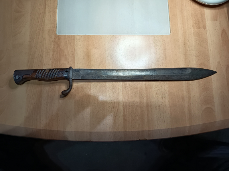 Bajonett 98/05 mit Abnahme. Leider ohne Scheide. Hersteller ist die Deutsche Maschinenfabrik Dursburg .