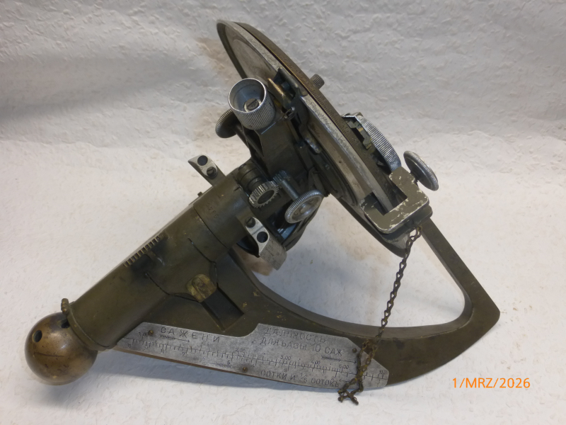 Sie bieten auf einen russischen Messkreis, vermutlich für eine Optik der Artillerie. Genaue Bezeichnung und Funktion und das Alter, sind mir nicht bekannt. Kann WK2 oder spätere Nutzung. Weist Gebrauchsspuren auf. Alle Stellräder und Skalen sind beweglich. Die Kugel zur Aufnahme im Stativ hat einen Durchmesser von 42mm und eine Bohrung von 10mm. Abmessungen ca. 25x25cm - Gewicht 2265g - Versand innerhalb Deutschland 7,50€ als versichertes Paket - EU 20,50€ versichertes Paket - Dieses ist eine Privatauktion, keine Garantie oder Rücknahme.